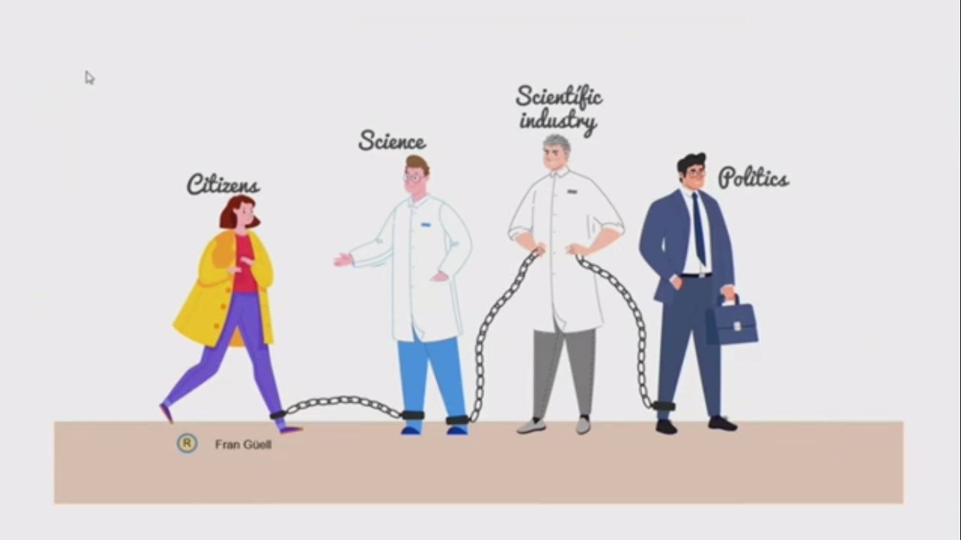 “Y ahí no queda todo, tenemos las asociaciones de pacientes, de las que hay que huir. Porque acaban siendo lo que una asociación científica no puede hacer, porque olería demasiado, como es hacer lobby: paga a asociaciones de pacientes para que sean ellos los que vayan a machete a conseguir sus objetivos. Esto es lo que he visto yo de una manera increíble allá.”